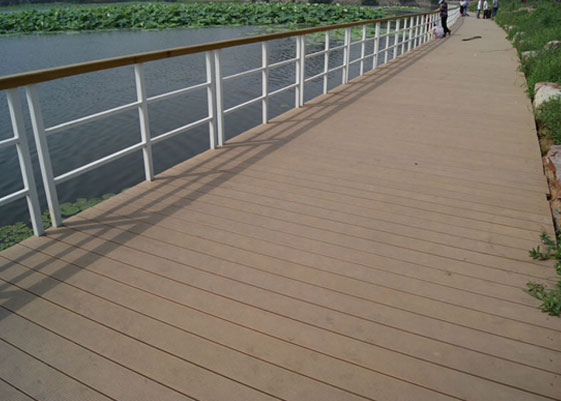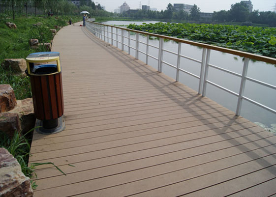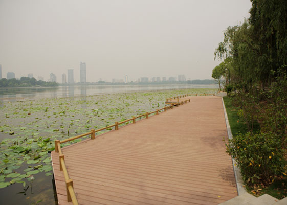 武漢東湖南大門人行塑木棧道全長200多米,塑木使用的面積約為1400平米。格林美塑木型材產(chǎn)品具有優(yōu)良的防腐、防水、防裂、防霉、抗蟲蛀和抗污性能,擁有自然的木質(zhì)紋理,防滑舒適的表面,更具備超強的承壓能力,使市民進出更加安全和悠閑。